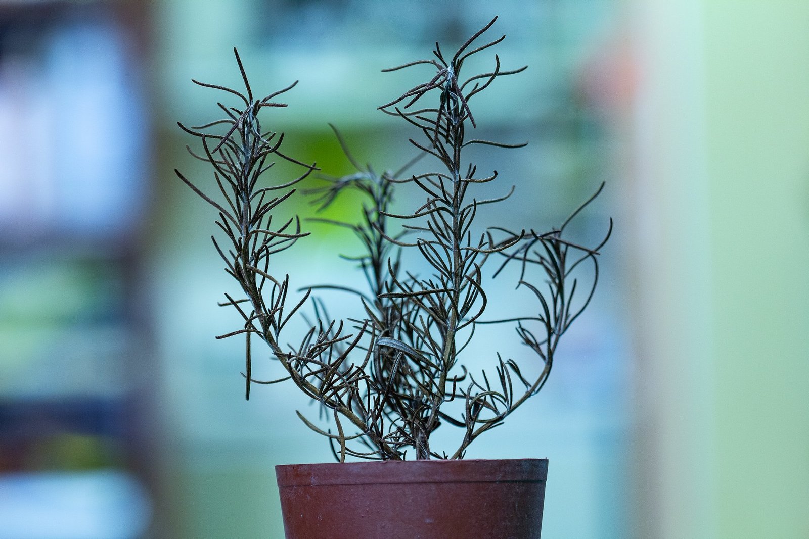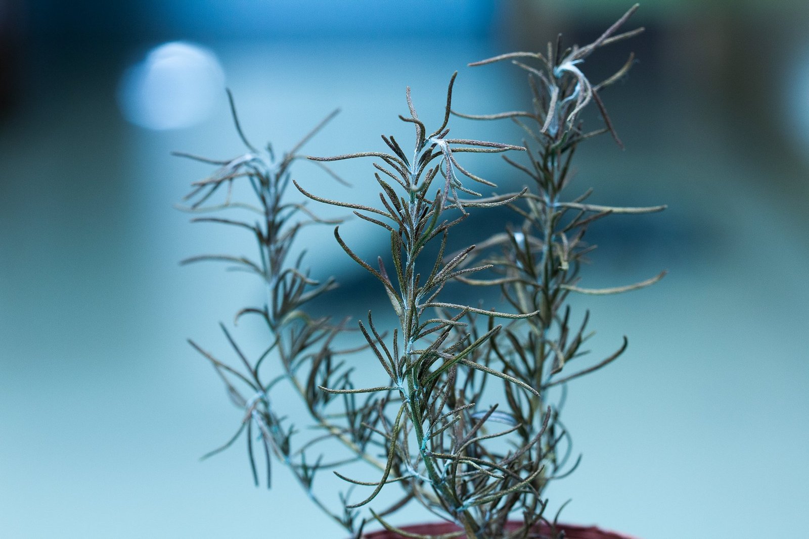今天把這盆死亡多時的迷迭香,移到沒有陽光的地方,近近聞它的時候,那香氣竟與生前相同,只是淡了些,也該是如此,不然就得請人來收妖了。