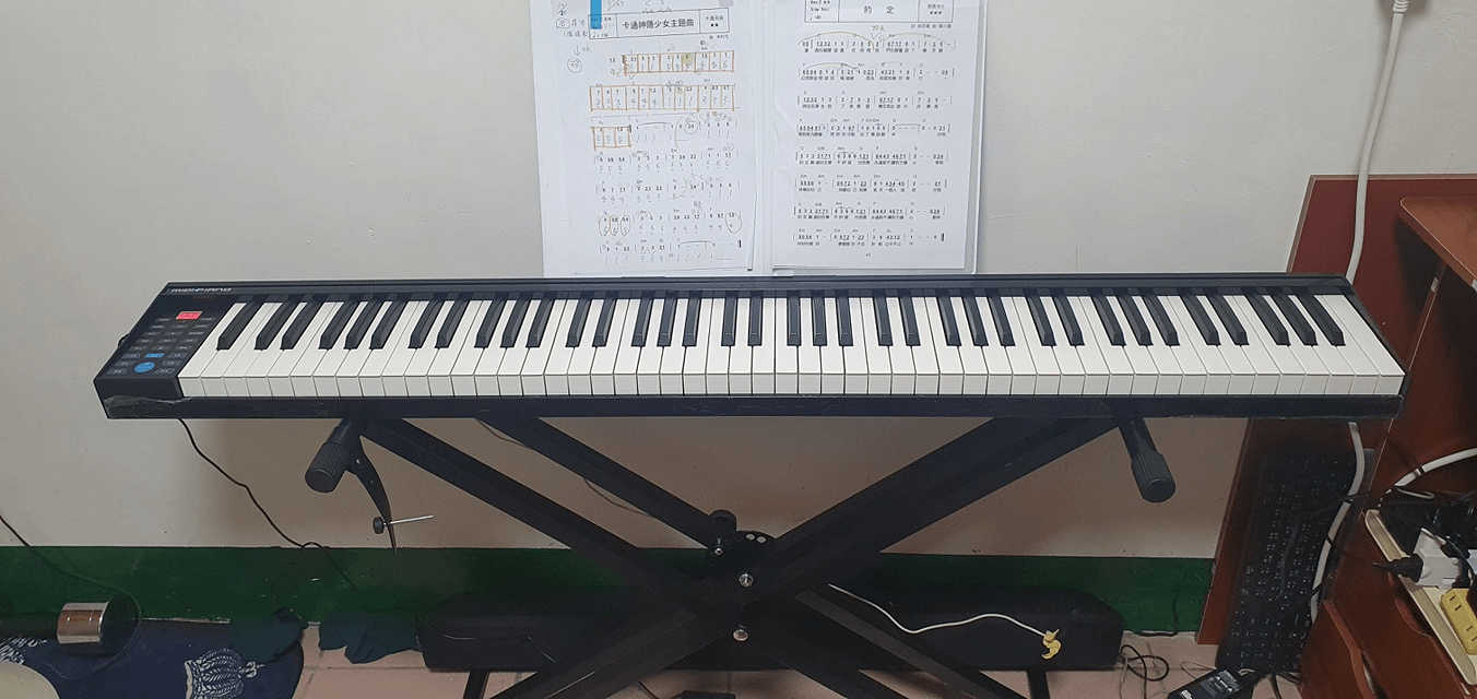 買的電鋼琴昨天架好了,這台也花了不少銀兩,鍵盤力度總算逼近於真的鋼琴,雖然音色無法與三角鋼琴來比,但加上擴大器調整低音之後,總算可以堪用。