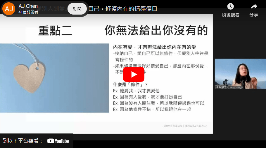 但是聽她在上課,並沒有那種威嚴的感覺,反倒是相當溫柔,她不會刨挖人的內心深處,而是引導妳自己找到它,而且願意說出來,所以聽她的課總是能有些收獲。