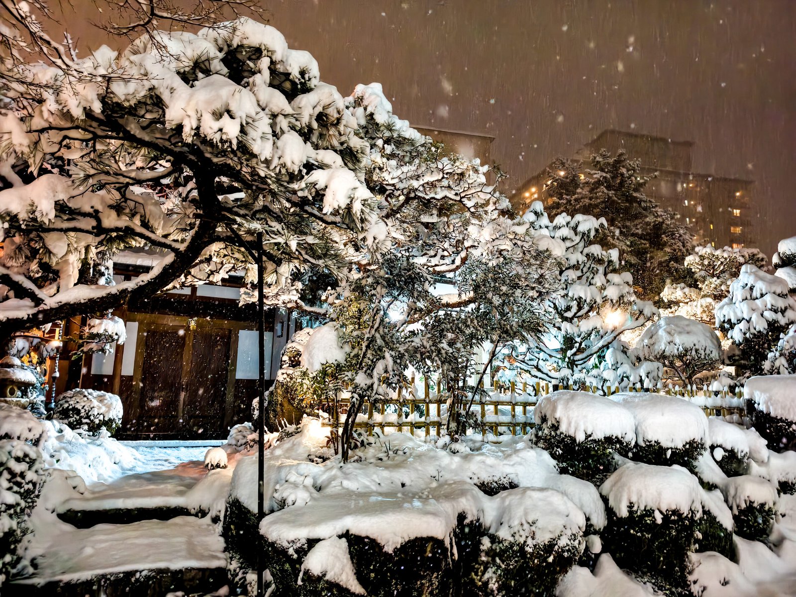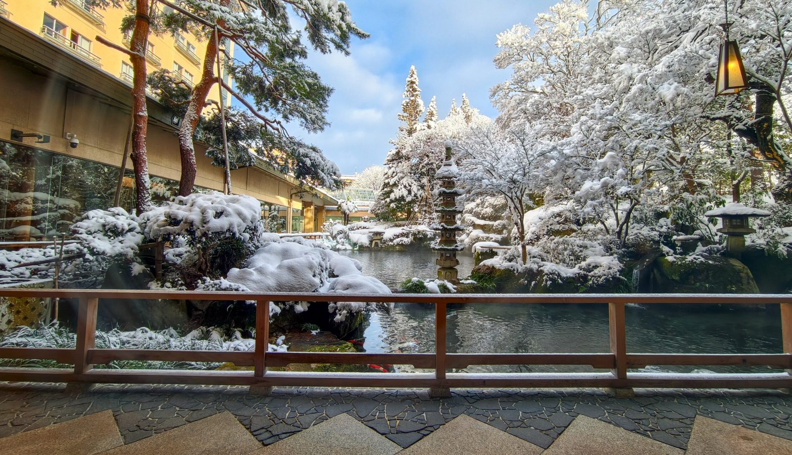 跟櫃台再三確認早上七點十分接駁到山下的巴士站,準備搭Alpico公車到新島島車站,再搭JR到松本,從松本轉搭高山線的高山濃飛巴士到高山,最後再搭高山線的特急到下呂,然後在雪裡走路拖行李到附近的飯店,現任天皇的御用五星級行館,水明館。