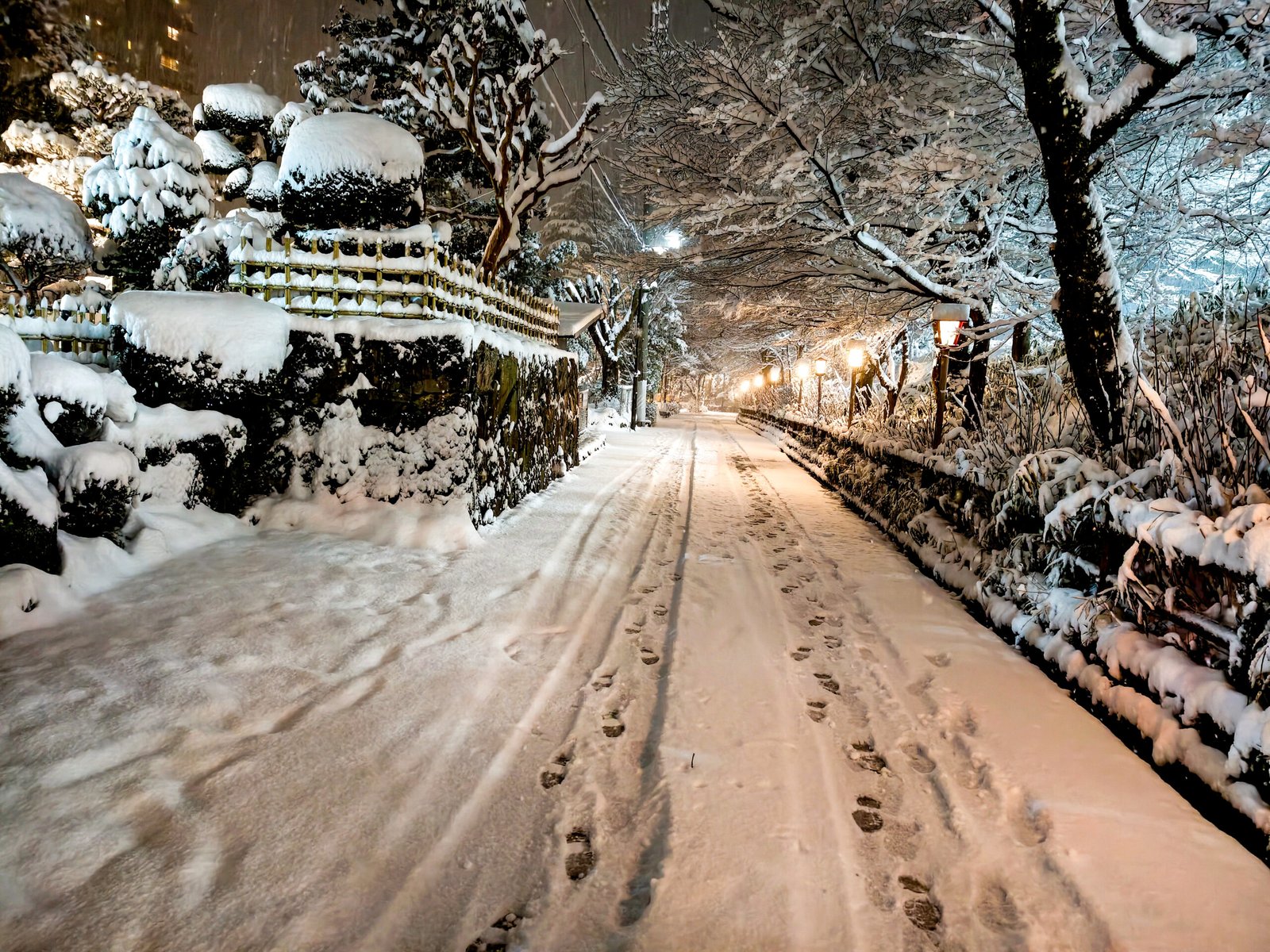 雪夜中撐著傘在夜燈下散步別有一番美感,又一次人生解鎖了雪夜散策了。