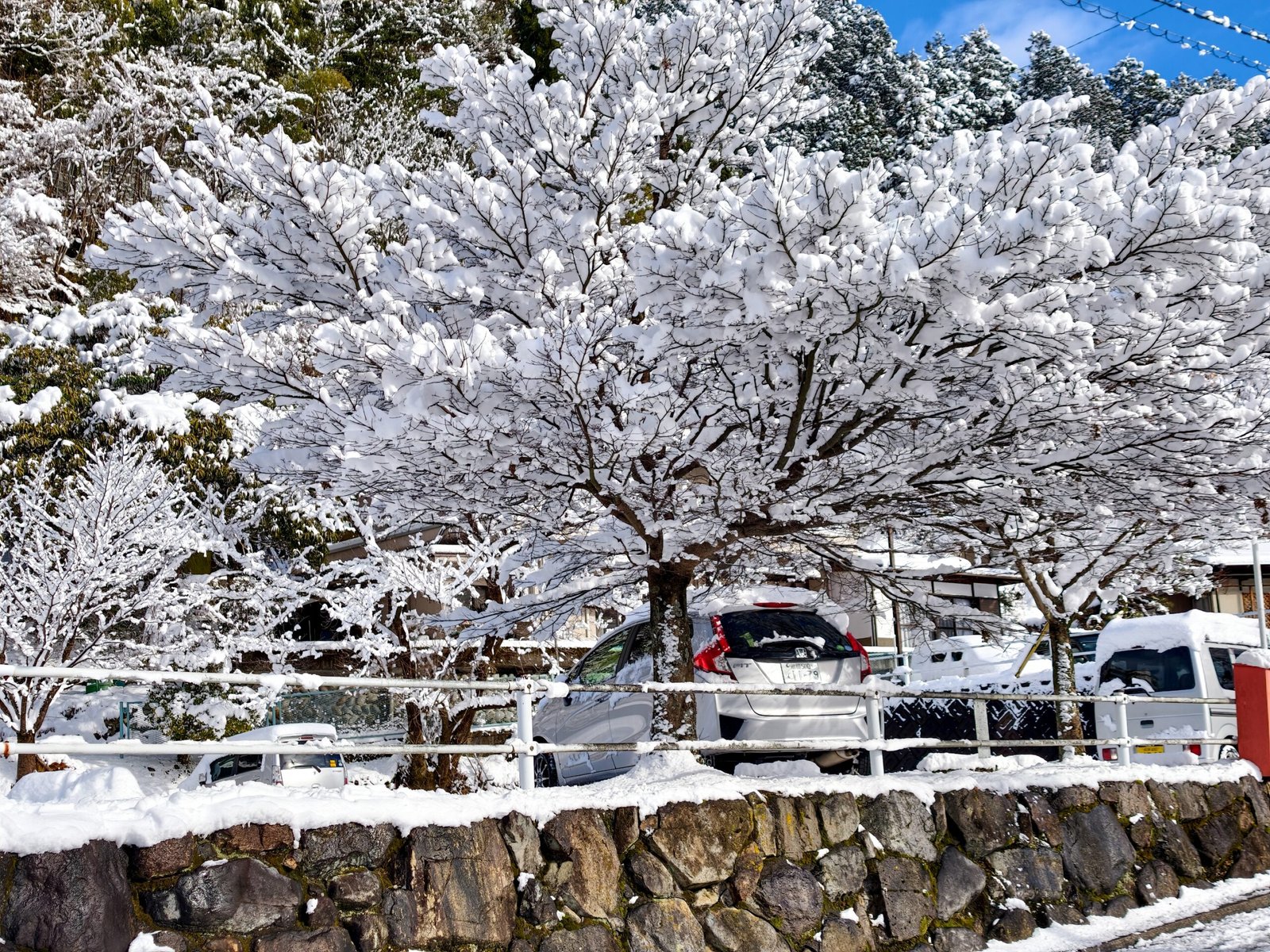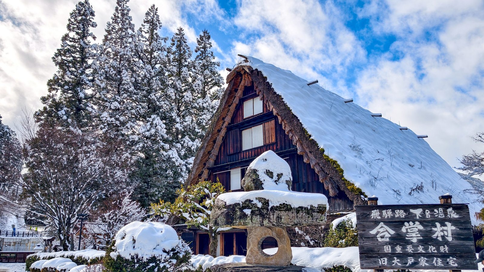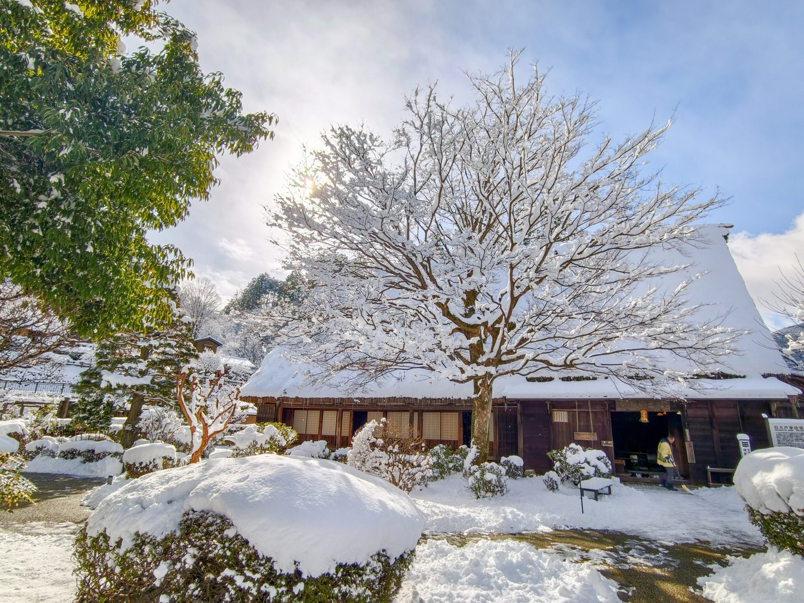 吃完雪中早餐後,我們往下呂合掌村散步去。