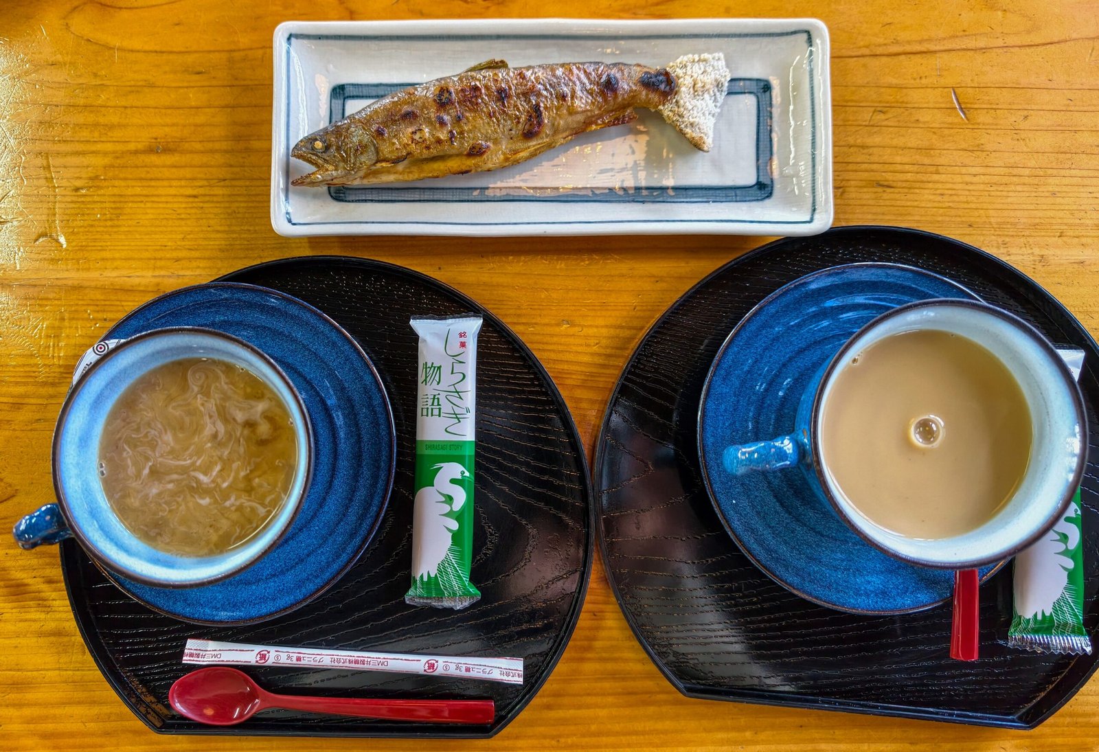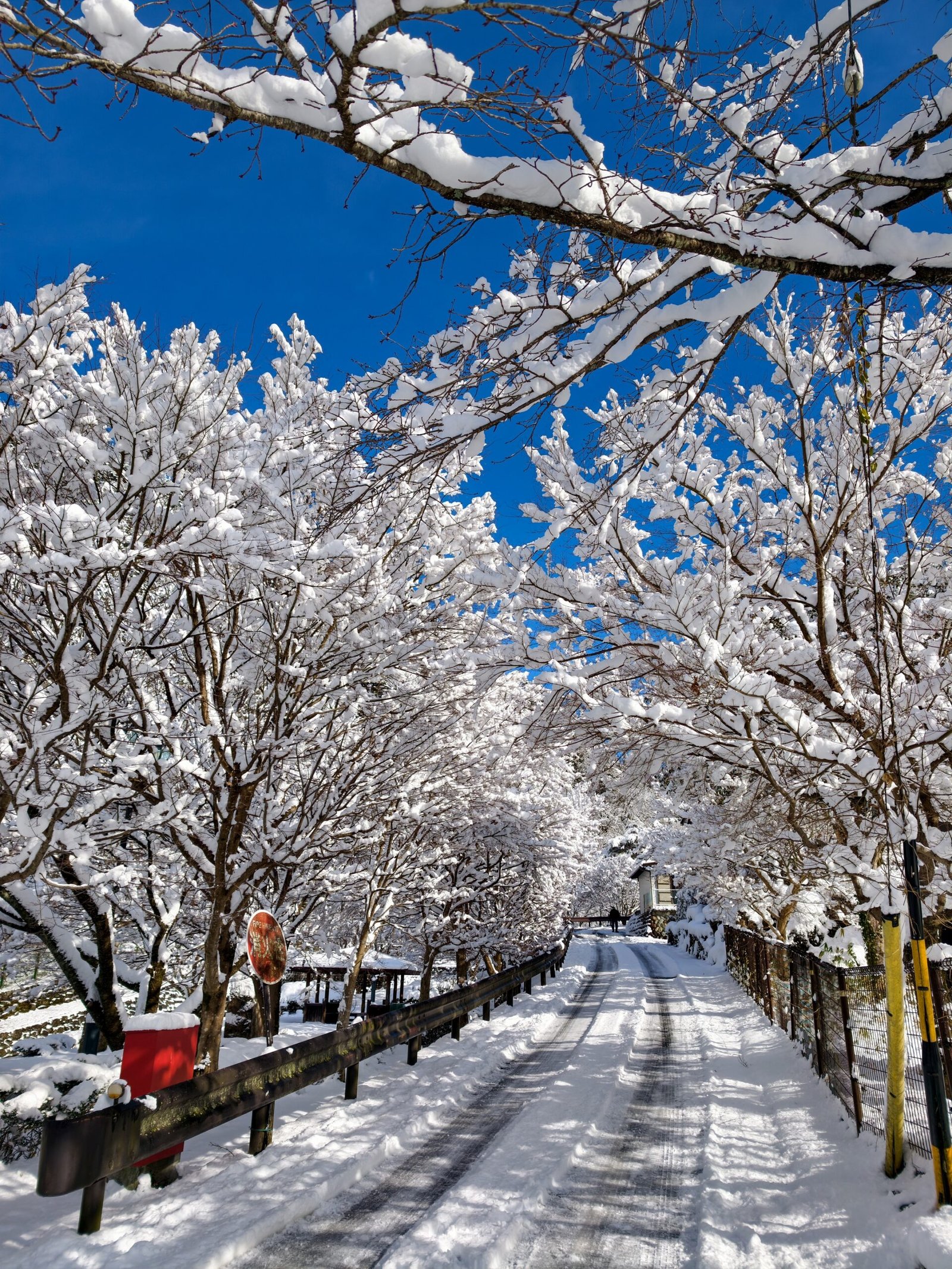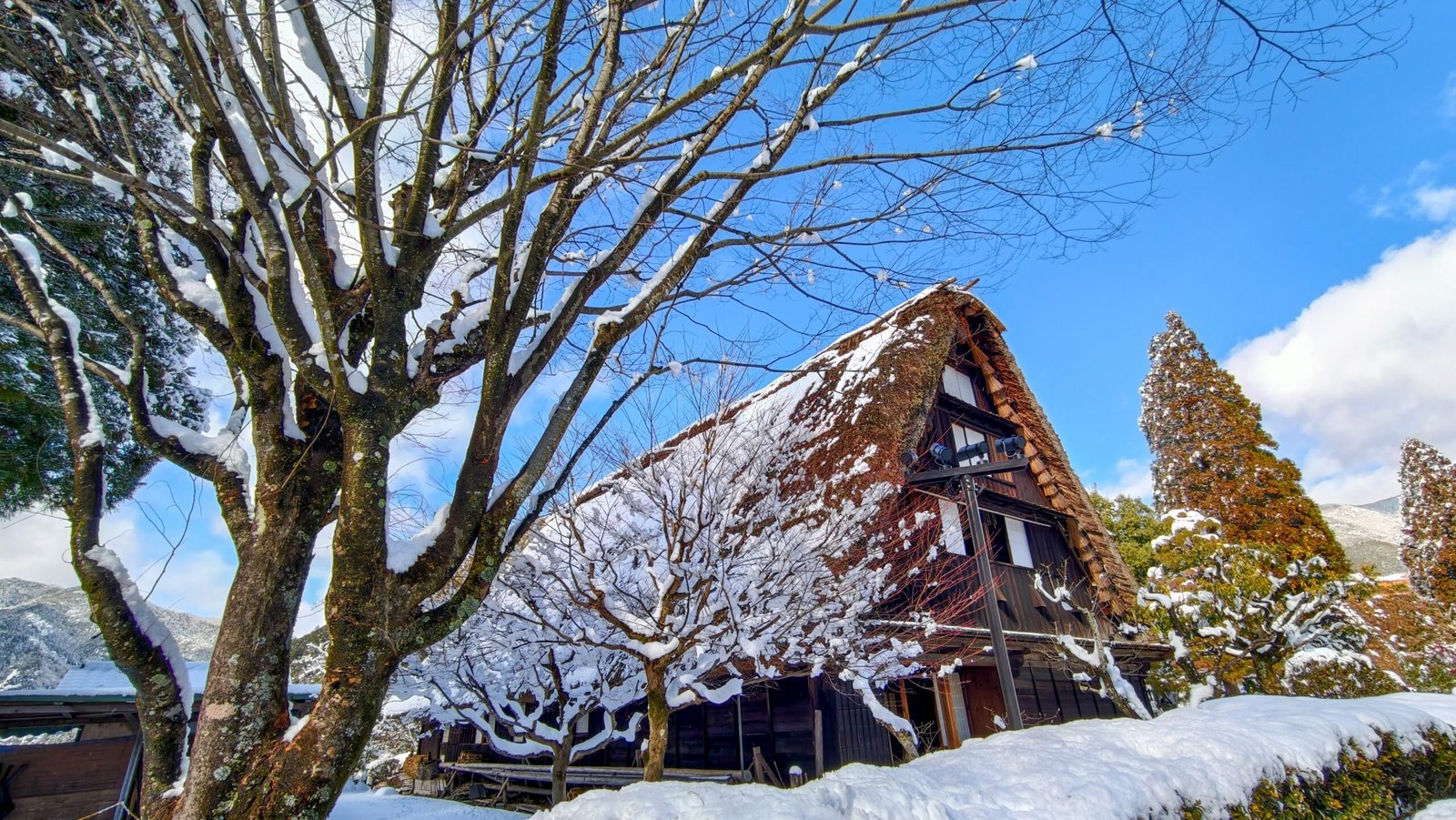吃完雪中早餐後,我們往下呂合掌村散步去。