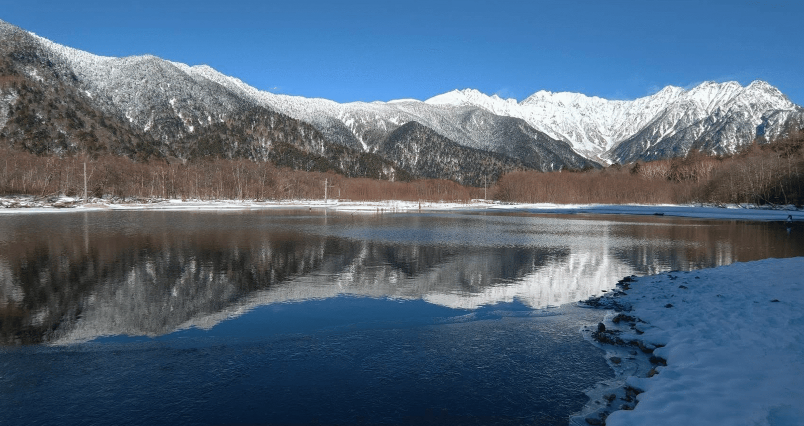 冬天的上高地,應該很少能到達,臺灣團開得很少,我們非常幸運的也遇到大晴天,真是太lucky了,穗高連峰真的好美,剛好拍到大正池裡的倒影,田代池裡溫泉的煙,這裏是仙境無誤。