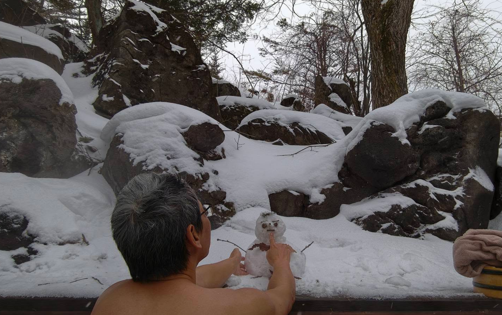 接著當然是泡湯湯了,但是因為是戶外公共裸湯,無法拍照,大概就是邊下雪邊泡湯的想像了。
