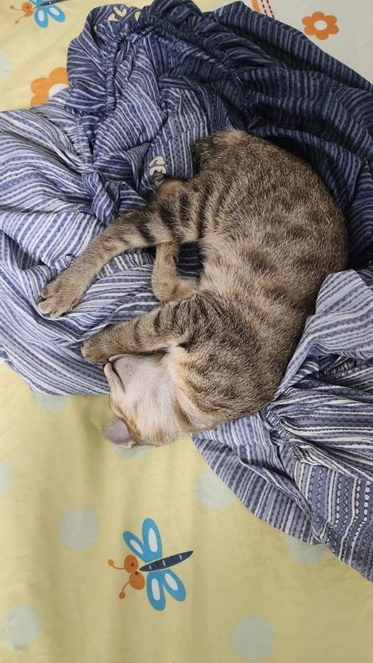 昨晚小辛巴挖床上的蜻蜓挖累了就昏倒了。