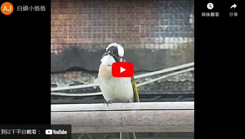 今天清晨原上班前,就在我花園裡呵著人生第一杯自製的豆漿時,一隻小白頭翁飛過來對我唱歌,我知道這一家子的翁翁經常來訪,而這隻小朋友已經獨立可以到處來去了。