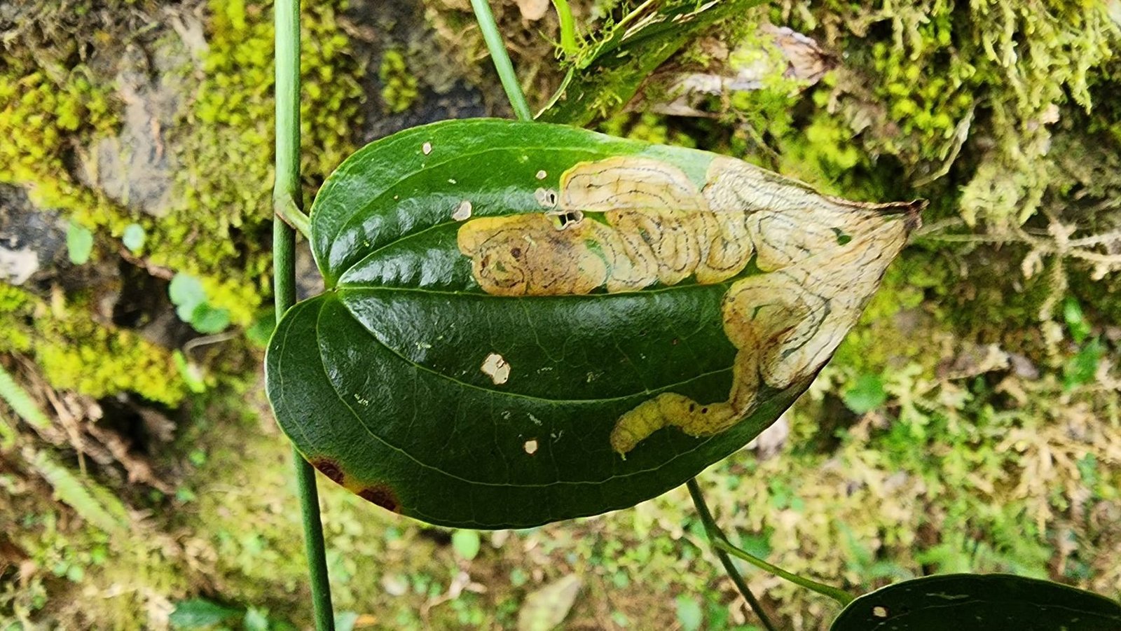 隊友說它好美,但是它的美是痛苦的代價,潛葉蟲鑽進它的葉縫指甲,沿路蛇行啃食所經道路的葉肉。