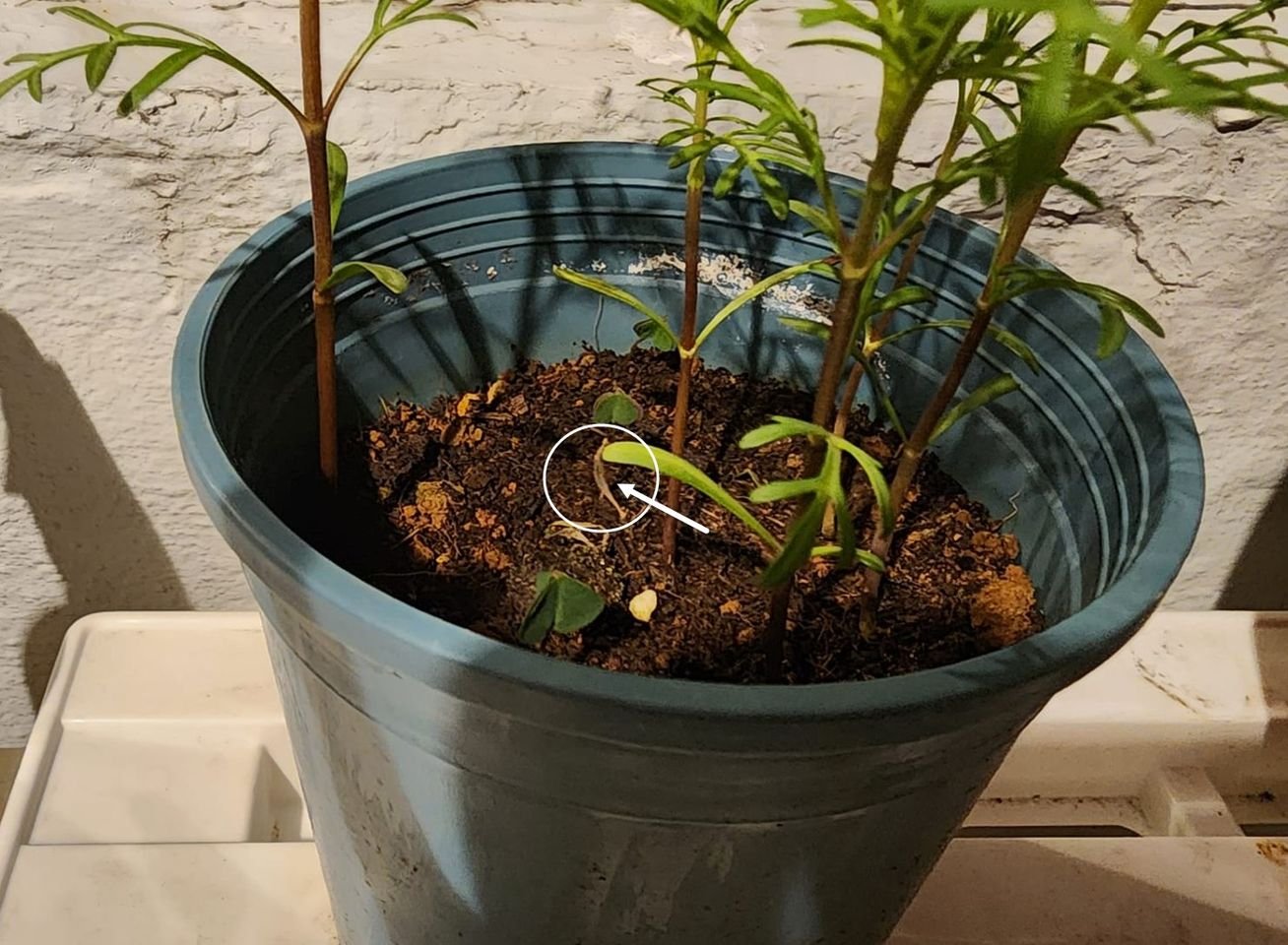 童年記憶 昨天發現我的波斯菊小朋友,在第一片葉子上還掛著種子殼,如框起來的地方。小小的種子完成了他的使命,想要放下入土了,但長大的自己卻還不願意丟棄,仍然懸掛著它的奶嘴外皮。這是他不想放掉的童年記憶嗎? Share 0