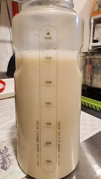 非基改生黃豆600g,大約32元,我分豆每包100g分成六小包,每100g加1300cc的水,可以榨出1200c,六包約7200c。