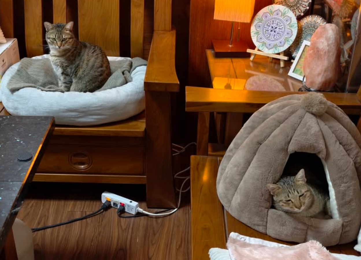 自從小巴解鎖拖著沙士瓶移動,讓他們網內互打一陣子之後,總算兩隻公貓會有一半的時間是和平相處的。
