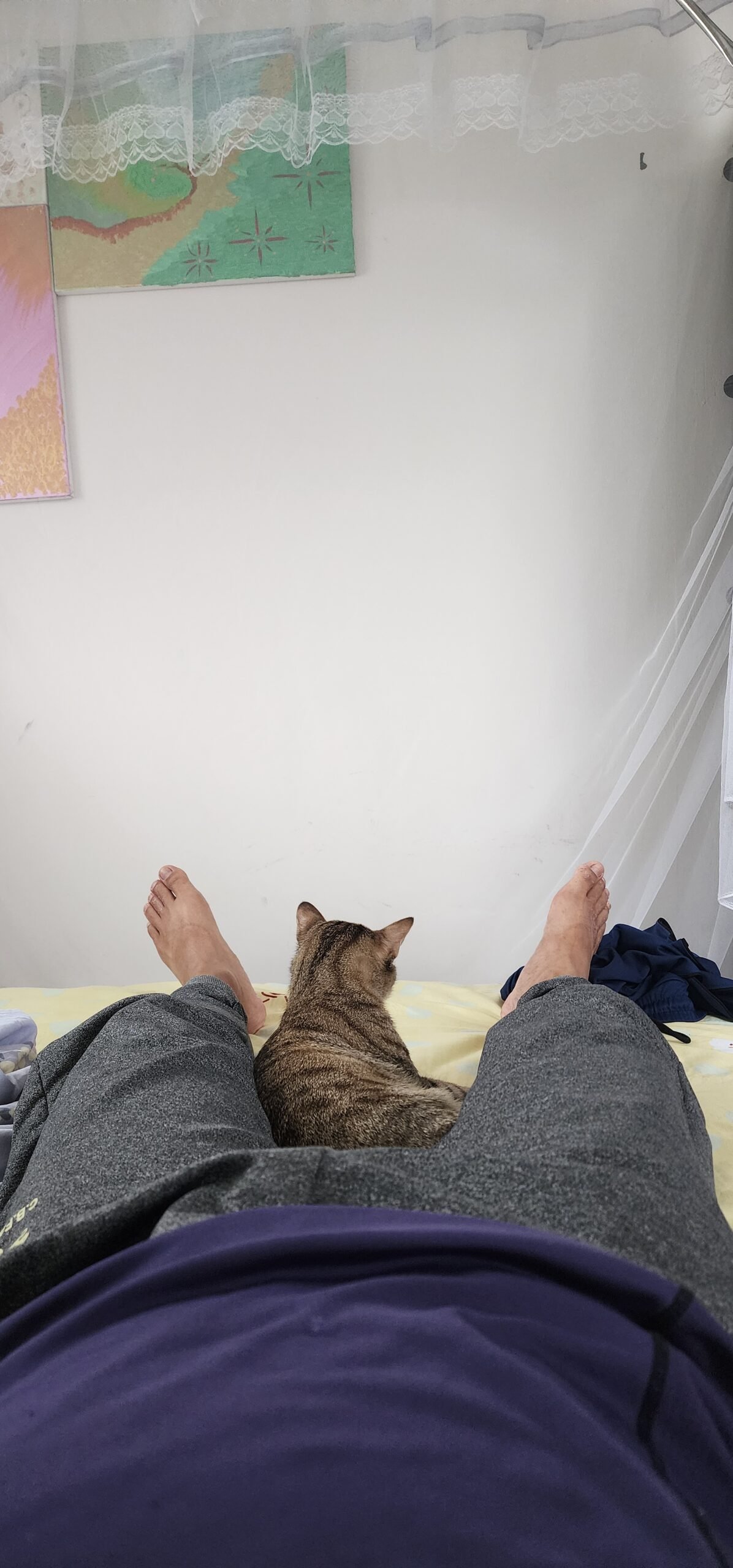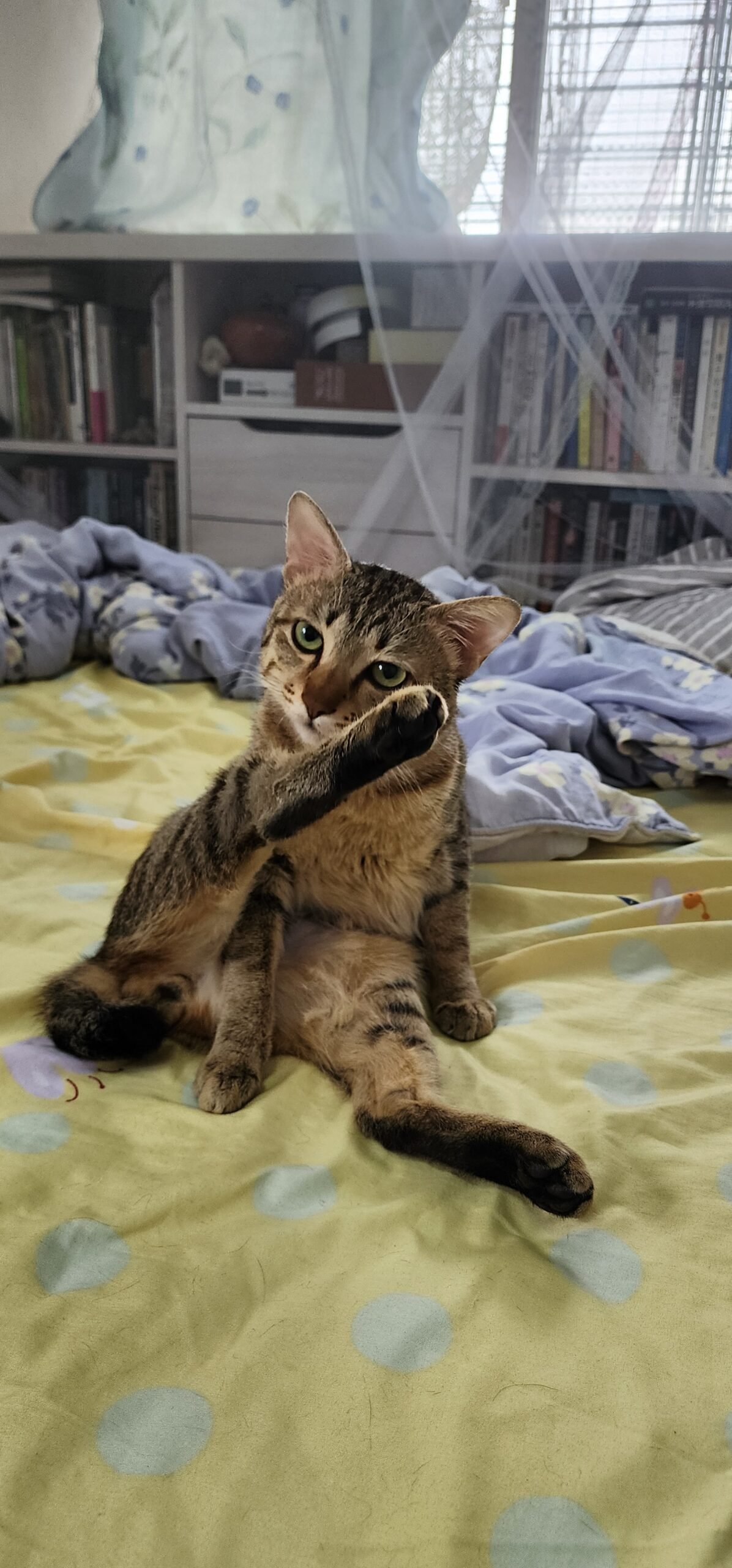 搞不定機器人眼睛,寫 code的一個沮喪的下午,只好與肉做的貓星人一起洗洗睡。