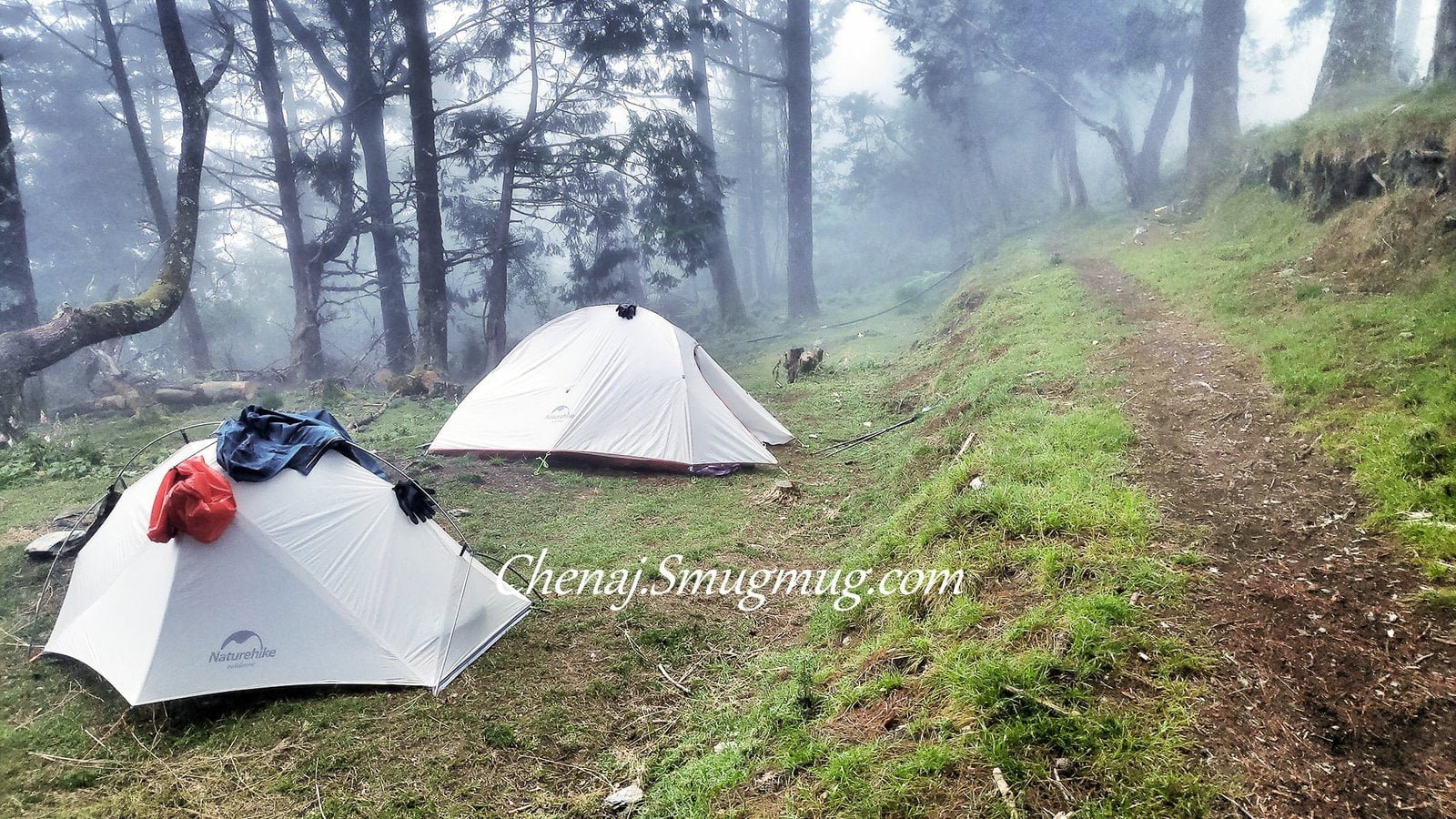 我的第一帳(NH雲尚2雙人)在合歡北就遇到大風強雨,自然在新帳的魔咒之下,第二帳也是遇雨,不過這次是無風的微雨。有時想想,也只有遇雨,才能測出這帳的強度,所以此帳開帳環境有點可惜。